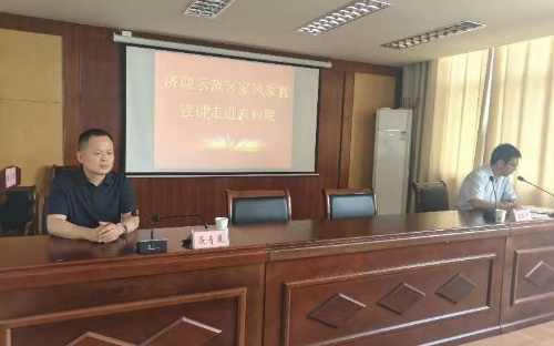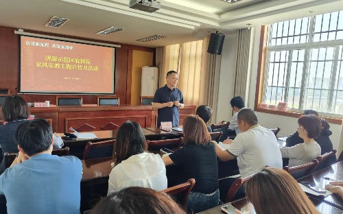 为深入贯彻落实习近平总书记关于注重家庭家教家风建设重要论述,大力营造家庭文明新风尚,引导干部职工在传承中华民族先进文化和优良家风方面发挥积极性和主动性,5月10日,济源示范区农科院开展家风家教主题宣传月活动,特邀请济源一中教师、国家二级心理咨询师聂青晨老师为全院干部职工授课。活动由党组成员、副院长连德舜主持。